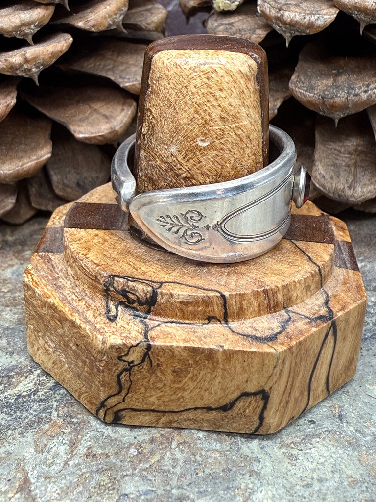 Vintage Silver-Plated Spoon Ring – January Birthstone (Garnet Red)